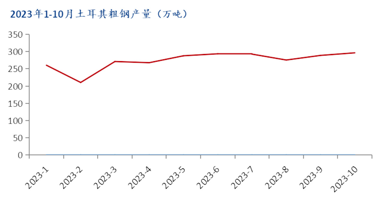 2023年1-10月土耳其粗鋼產(chǎn)量