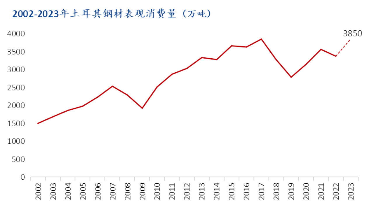 2002-2023年土耳其鋼材表觀消費(fèi)量