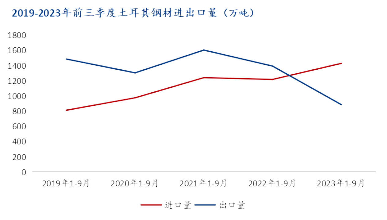 2019-2023年前三季度土耳其鋼材進(jìn)出口量